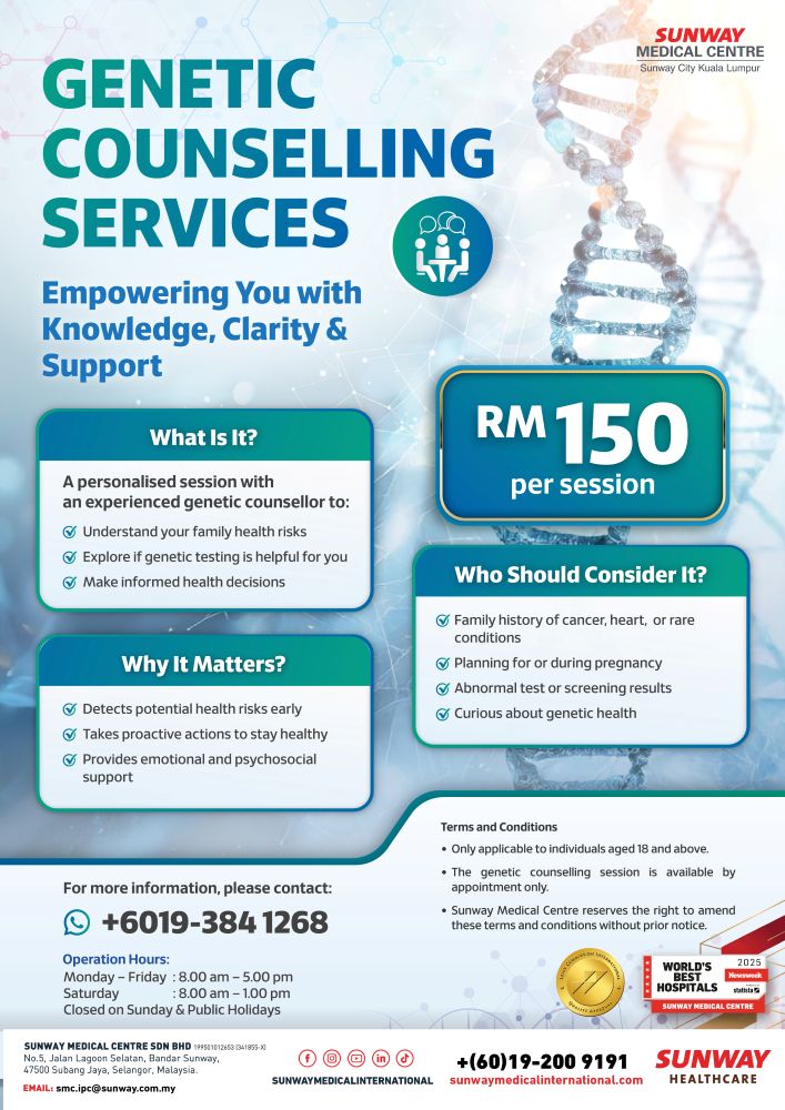 Sesi kaunseling genetik tersedia berdasarkan janji temu.